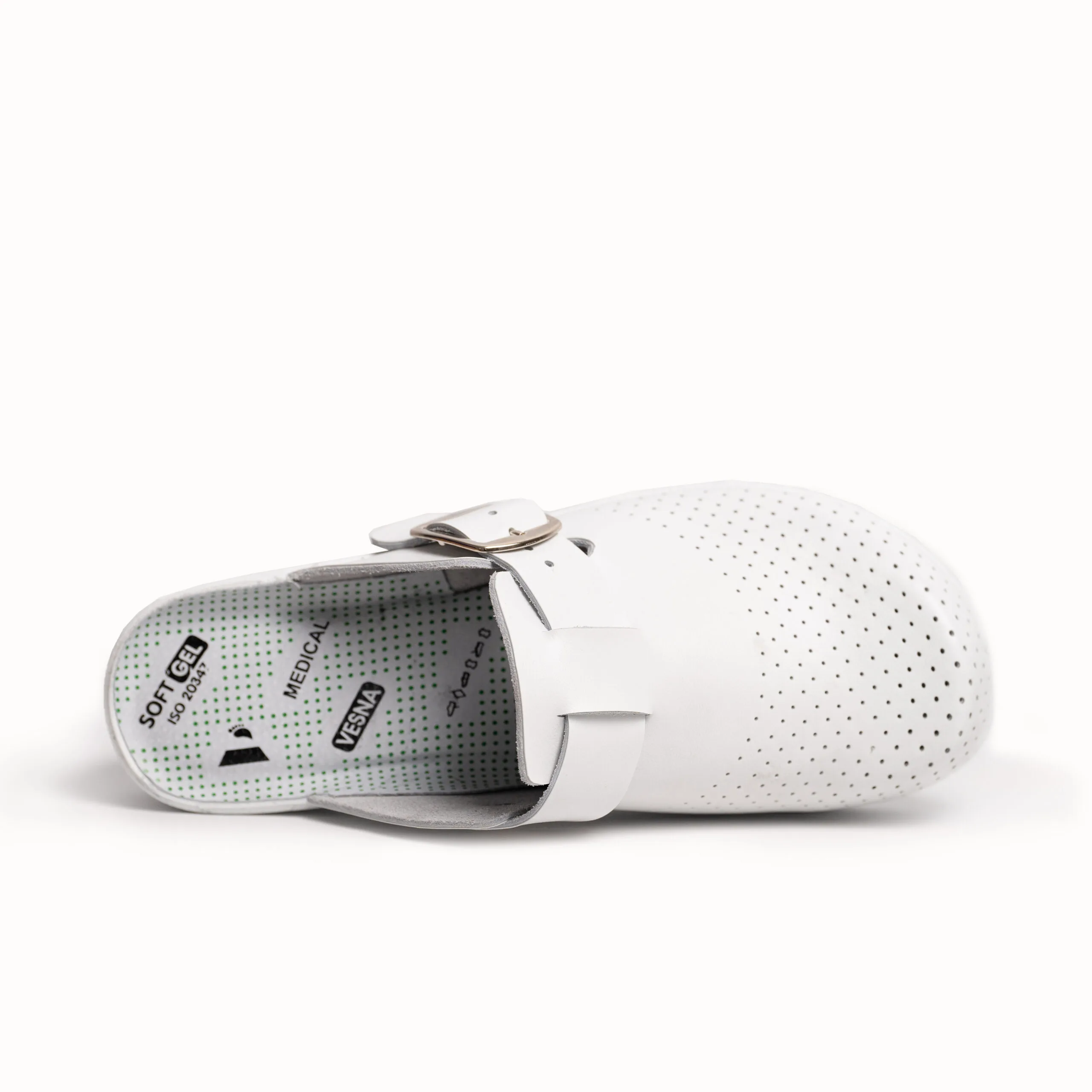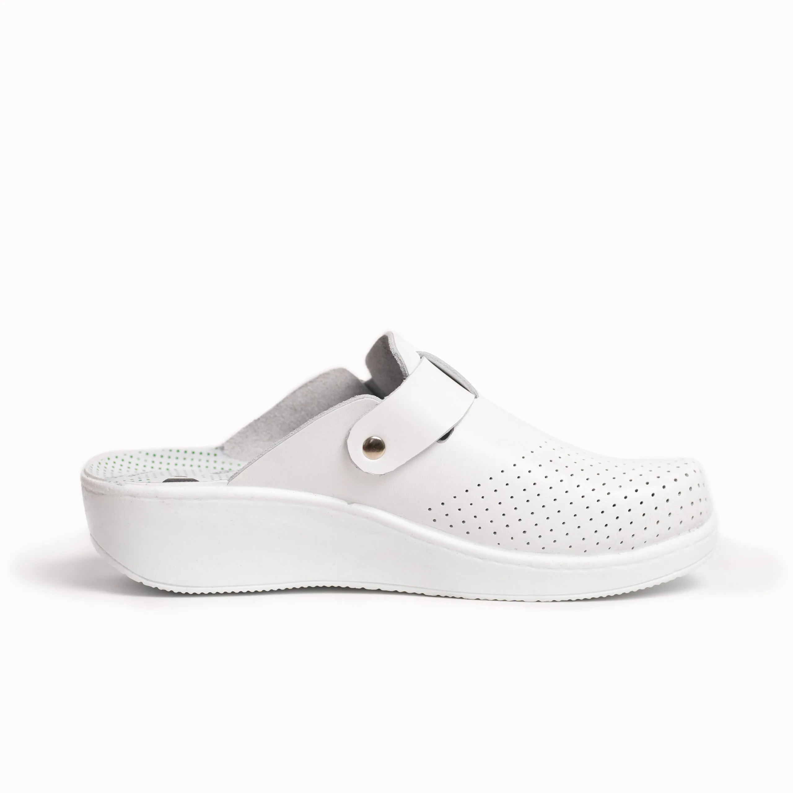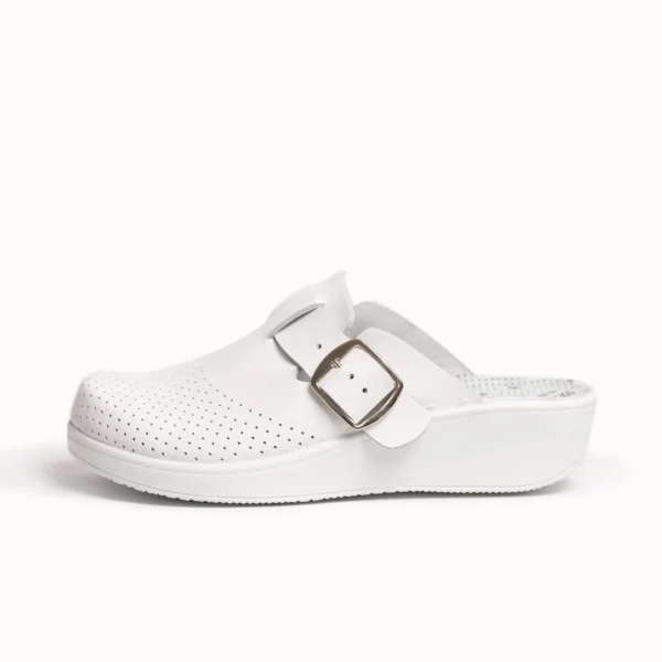 De klompen zijn gemaakt van natuurlijk leer, zowel het bovenwerk als de binnenzool, wat zorgt voor duurzaamheid, comfort en een aangenaam draaggevoel. De zool is gemaakt van PU-materiaal met antislipeigenschappen , wat zorgt voor veiligheid en stabiliteit tijdens het lopen.