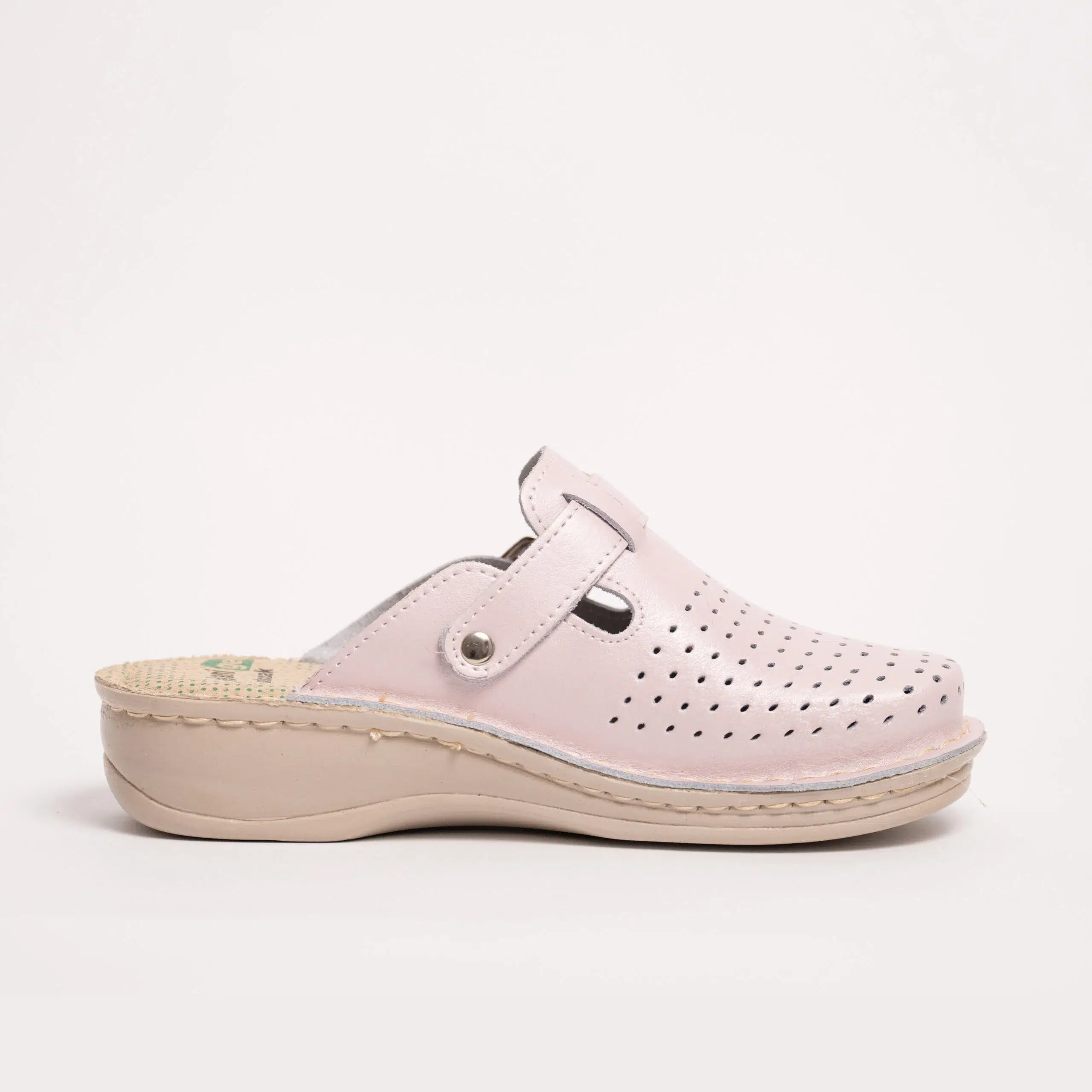Damesklompen gemaakt van het fijnste natuurlijke leer en een leren binnenzool met 8 mm massagegel, ideaal voor mensen met hielspoorproblemen.